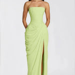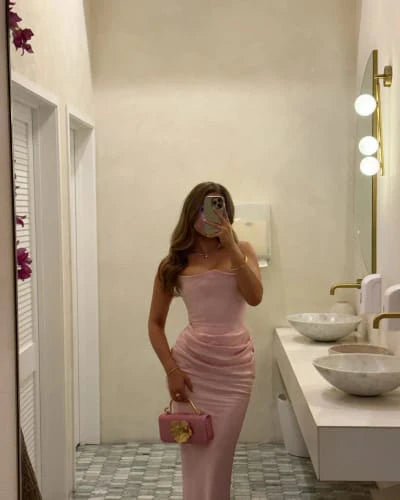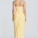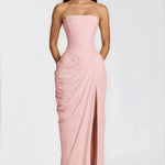 Catarine Duga Bustier Haljina je idealan komad za one koji žele da spoje sofisticiranost, senzualnost i beznapor flow u jednom izgledu. Veoma vešto izrađena od visokokvalitetnog krepa, ova haljina nudi mekan i fluidan drap koji nežno obavija vaše obline s delikatnošću i udobnošću, osiguravajući da se osećate samouvereno tokom celog dana.