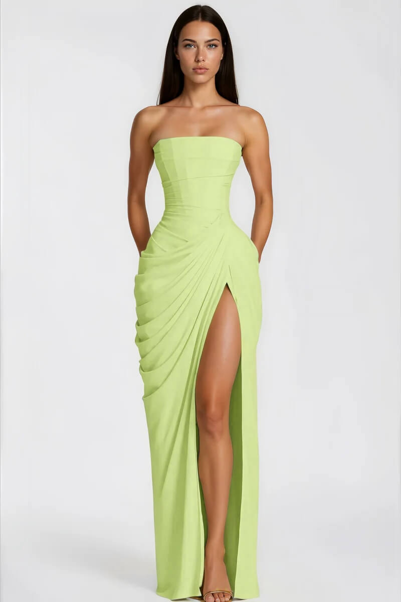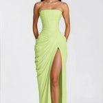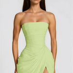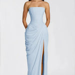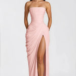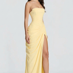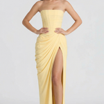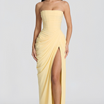 - Struktura & Senzualnost: Strukturirani bustier korzet pruža savršeno pristajanje, lepo dopunjeno nabranim detaljima i razigranim, elegantnim bočnim prorezom.