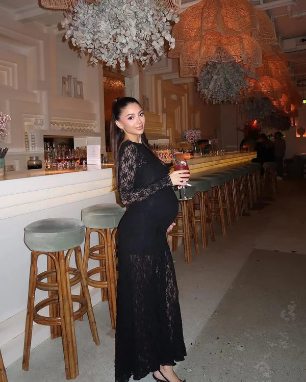 Ova crna čipkasta maksi haljina je savršen spoj elegancije i udobnosti, čak i za buduće mame! Zamršen čipkasti uzorak je izuzetno privlačan, dodajući dašak sofisticiranosti. Materijal je mekan i rastegljiv, prilagođava se rastućem bebinom stomaku, a istovremeno izgleda laskavo. Prodavac je pružio odličnu uslugu uz brzu isporuku. Sviđa mi se.